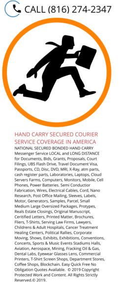 Than Trailer Load· Air Courier· On Board Flight Couriers· Hand Carry Delivery Messenger Service National· Courier Messenger Delivery· Bids· Grant Delivery· Proposals Deliveries· Court Filing Messengers· Rush Passport Pickup & Delivery· Expedited Visa Delivery & Pickup Exclusive Expedite Domestic· Factory Machine Parts Delivery· Life Sciences Delivery Serving businesses· companies and corporations throughout North America· the Northeast· Mid West· Mid Atlantic Regions· New England· the South· Southeast· West· and Central united States of America with unparalleled service with 98% on-time performance. You need a local national courier with long distance delivery reach offering door to door pickup anywhere in America with delivery capabilities to all 50 States 24 hours per day. You have transportation and logistics problems· we have the solutions. You need a time critical time sensitive delivery for your highly sensitive or high value products call now right now. You a need a secure service to deliver highly sensitive data· documents and flash drive call us now. MAJOR CREDIT CARDS ACCEPTED On-Demand