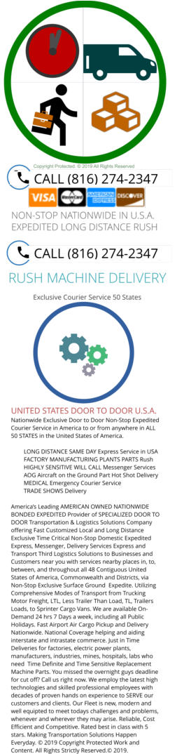 Than Trailer Load· Air Courier· On Board Flight Couriers· Hand Carry Delivery Messenger Service National· Courier Messenger Delivery· Bids· Grant Delivery· Proposals Deliveries· Court Filing Messengers· Rush Passport Pickup & Delivery· Expedited Visa Delivery & Pickup Exclusive Expedite Domestic· Factory Machine Parts Delivery· Life Sciences Delivery Serving businesses· companies and corporations throughout North America· the Northeast· Mid West· Mid Atlantic Regions· New England· the South· Southeast· West· and Central united States of America with unparalleled service with 98% on-time performance. You need a local national courier with long distance delivery reach offering door to door pickup anywhere in America with delivery capabilities to all 50 States 24 hours per day. You have transportation and logistics problems· we have the solutions. You need a time critical time sensitive delivery for your highly sensitive or high value products call now right now. You a need a secure service to deliver highly sensitive data· documents and flash drive call us now. MAJOR CREDIT CARDS ACCEPTED On-Demand